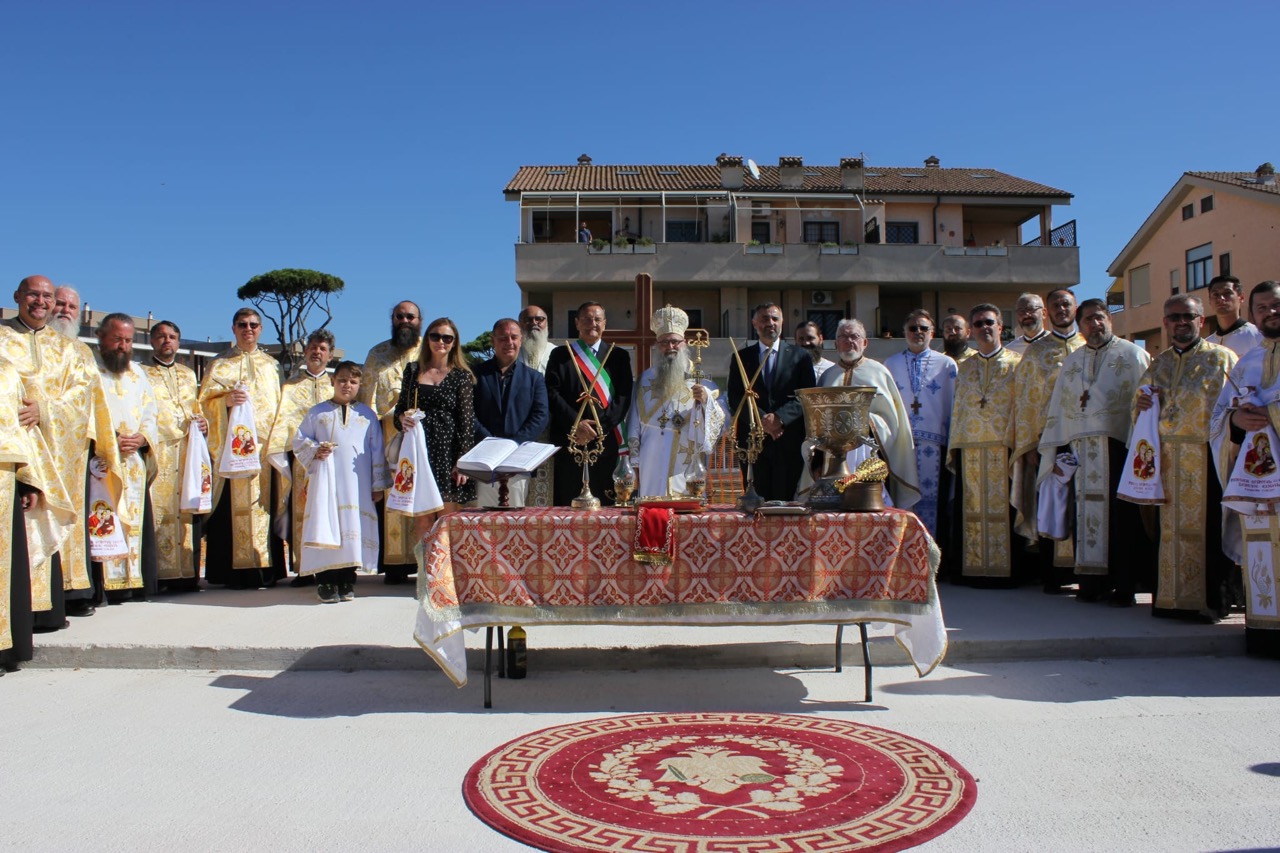 Slujba a fost săvârșită de către Preasfințitul Părinte Episcop Siluan al Episcopiei Ortodoxe Române a Italiei, înconjurat de un ales sobor de preoți și diaconi, consilieri eparhiali, protopopi și clerici din Roma și împrejurimi. Prin rugăciune și prin așezarea pietrei de temelie, noul lăcaș de închinare a fost încredințat binecuvântării lui Dumnezeu.
