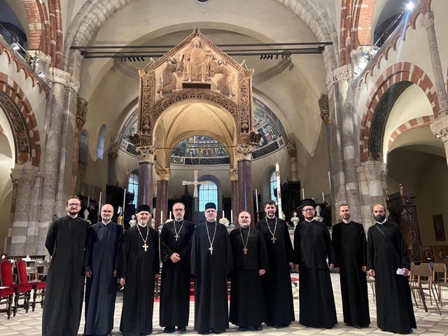 Cu binecuvântarea Preasfințitului Părinte Episcop SILUAN, al Episcopiei Ortodoxe Române a Italiei, luni, 2 iunie 2025, la parohia „Sfântul Ierarh Martin Mărturisitorul, episcopul Romei” din Roma (Trullo), s-a săvârșit Dumnezeiasca Liturghie într-un sobor de preoți din Protopopiatul Lazio I sub protia Preacucernicului Părinte Paroh Andrei Aslan.