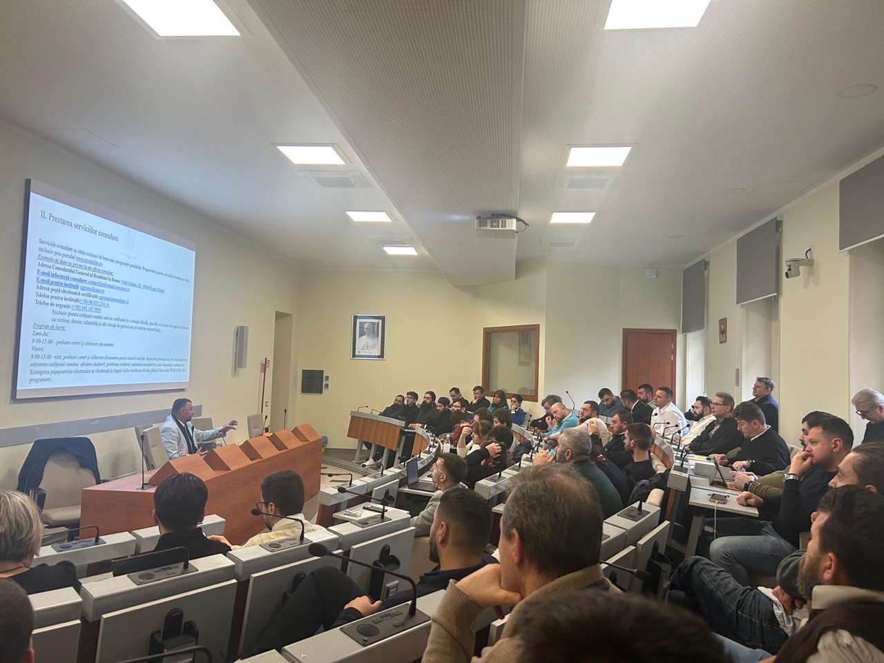 În contextul activităților de formare și dialog dedicate comunității românești din Italia, studenții Extensiei de la Roma a Facultății de Teologie Ortodoxă din cadrul Universității din București, s-au întâlnit luni, 19 ianuarie 2026, cu domnul Marian Popescu, Consulul General al României la Roma, care a susținut o prezentare amplă privind rolul și misiunea instituției consulare. Întâlnirea a avut caracterul unui exercițiu de orientare practică într-un spațiu în care românii din diaspora se confruntă adesea cu situații administrative, juridice și sociale complexe, iar cunoașterea cadrului consular devine un sprijin concret pentru viața de zi cu zi.