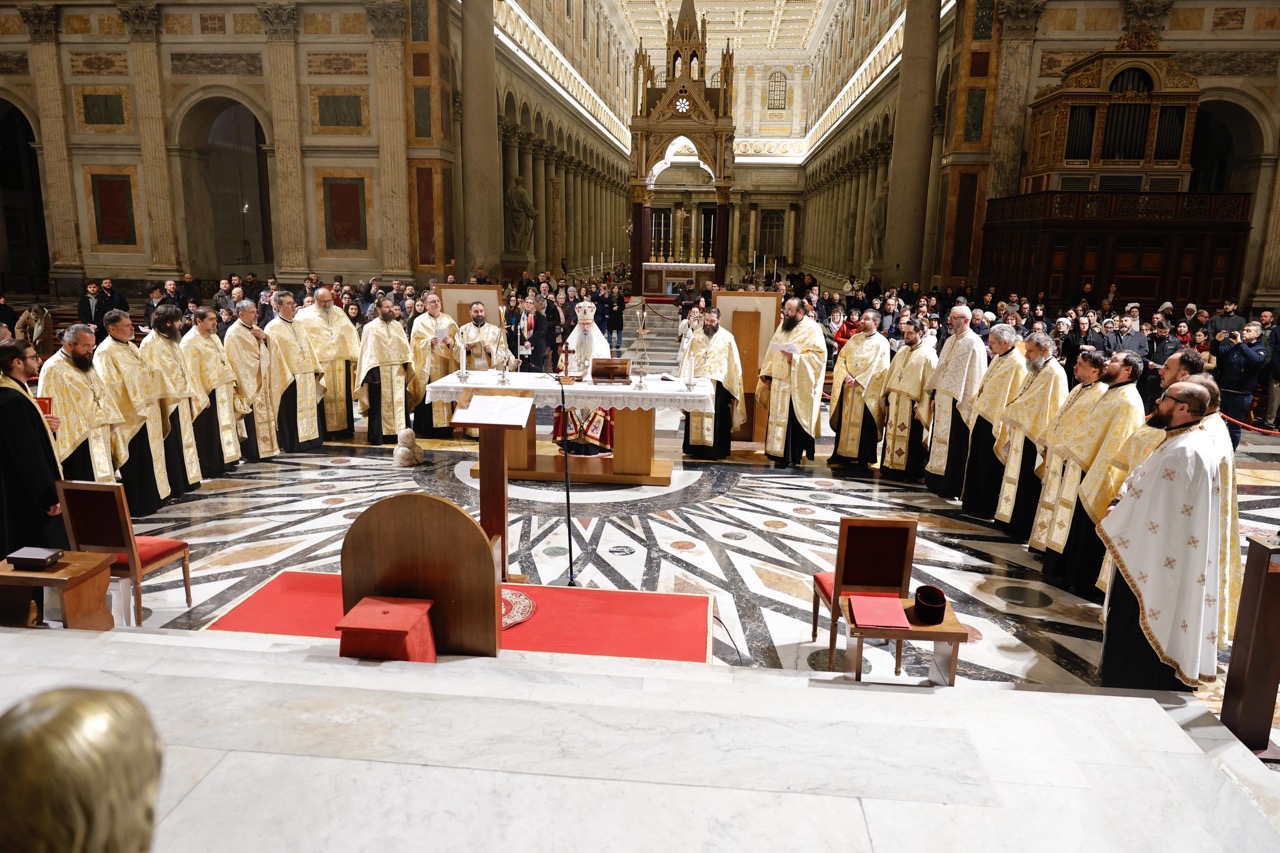 Marți, 20 ianuarie 2026, Preasfințitul Părinte Episcop Siluan al Episcopiei Ortodoxe Române a Italiei, înconjurat de un sobor de clerici din Roma și împrejurimi, a săvârșit slujba Vecerniei ortodoxe în limba italiană, în Basilica San Paolo Fuori le Mura din Roma.